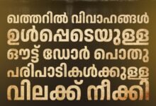 ദോഹ: ഖത്തറിൽ വിവാഹങ്ങളും അനുശോചന ചടങ്ങുകളും ഉൾപ്പെടെയുള്ള സാമൂഹിക ഒത്തുചേരലുകൾ തുറസ്സായ സ്ഥലങ്ങളിൽ (Outdoor) സംഘടിപ്പിക്കാൻ അനുമതി നൽകിയതായി ആഭ്യന്തര മന്ത്രാലയം അറിയിച്ചു. 2026 മാർച്ച് 25…
