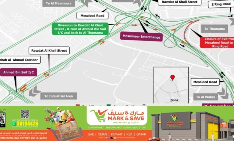 മിസൈദ് റോഡ് എക്സിറ്റ് ഇ റിംഗ് റോഡിലേക്കുള്ള താൽക്കാലിക റോഡ് അടച്ചിടുമെന്ന് പൊതുമരാമത്ത് വകുപ്പ് അഷ്ഗാൽ അറിയിച്ചു. അൽ വക്രയിൽ നിന്ന് വരുന്നതും അൽ വക്രയിൽ നിന്ന് വരുന്നവർക്കും മിസൈമീർ ഇന്റർചേഞ്ചിലേക്ക് പോകുന്നതുമായ വാഹനങ്ങളെ ഇത് ബാധിക്കും.