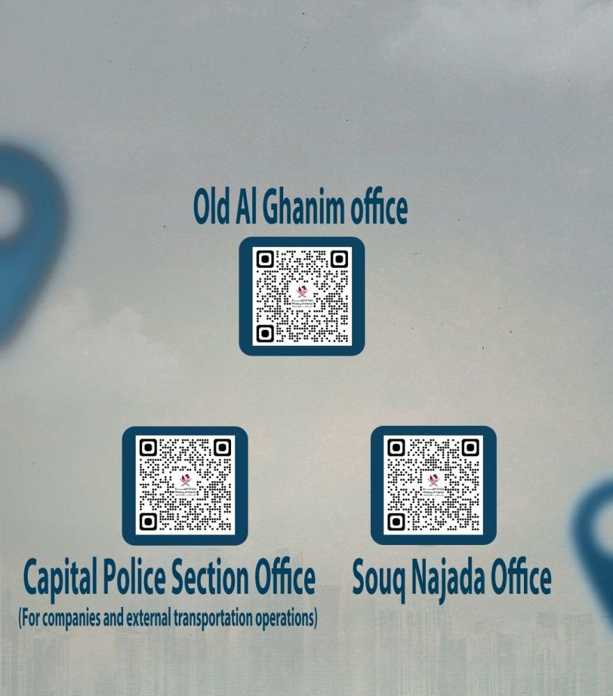 കമ്പനി, ബാഹ്യ ട്രാൻസ്ഫർ പ്രവർത്തനങ്ങൾ കൈകാര്യം ചെയ്യുന്ന സൂഖ് നജാദ ഓഫീസിലും കാപ്പിറ്റൽ പോലീസ് സെക്ഷൻ ഓഫീസിലും, പെർമിറ്റ് വിതരണ സേവനങ്ങൾ തുടരും.