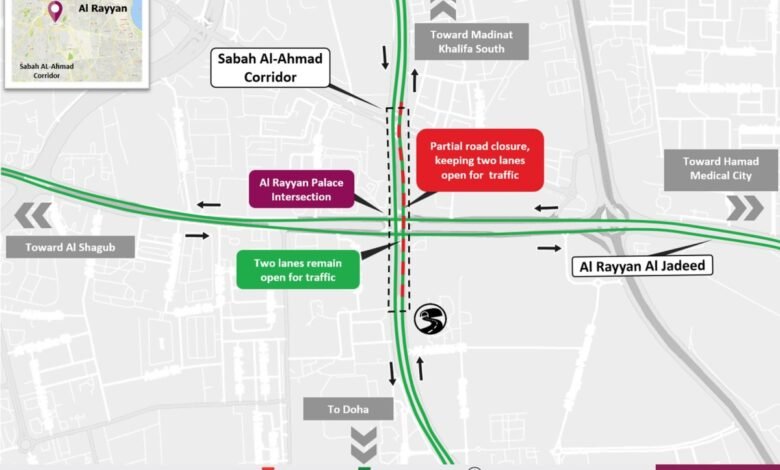അൽ റയ്യാൻ റോഡിലെ സബാഹ് അൽ-അഹ്മദ് കോറിഡോർ ടണലിൽ (റോഡ് നമ്പർ 950) ഭാഗികമായി ഗതാഗതം അടച്ചിടുന്നതായി പൊതുമരാമത്ത് അതോറിറ്റിയായ അഷ്ഗൽ പ്രഖ്യാപിച്ചു,