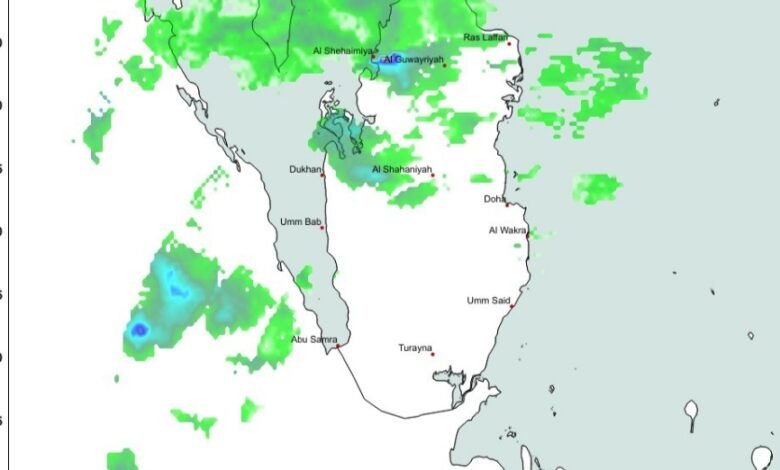 ഖത്തറിന്റെ വിവിധ ഭാഗങ്ങളിൽ മഴ പെയ്യുന്നതായി കാലാവസ്ഥാ നിരീക്ഷണ കേന്ദ്രം (QMD) അറിയിച്ചു. ചിലയിടങ്ങളിൽ ഇടിമിന്നലോടു കൂടിയ മഴയ്ക്കും സാധ്യതയുണ്ട്. മഴമേഘങ്ങൾ ഖത്തറിന് മുകളിലായി കാണപ്പെടുന്ന കാലാവസ്ഥാ ഭൂപടം അധികൃതർ പുറത്തുവിട്ടു. ഈ സാഹചര്യത്തിൽ പുറത്തിറങ്ങുന്നവർ ആവശ്യമായ മുൻകരുതലുകൾ എടുക്കണമെന്ന് അധികൃതർ മുന്നറിയിപ്പ് നൽകി.