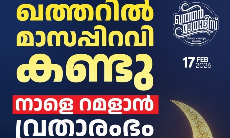 ദോഹ: ഖത്തറിൽ നാളെ (2026 ഫെബ്രുവരി 18, ബുധൻ) വിശുദ്ധ റമദാൻ മാസത്തിലെ ആദ്യ ദിനമായിരിക്കുമെന്ന് ഔഖാഫ് – ഇസ്ലാമിക് കാര്യ മന്ത്രാലയത്തിന് കീഴിലുള്ള മാസപ്പിറവി നിർണ്ണയ സമിതി പ്രഖ്യാപിച്ചു. ഇന്ന് (ചൊവ്വാഴ്ച) വൈകുന്നേരം മാസപ്പിറവി ദർശിച്ചതിന്റെ അടിസ്ഥാനത്തിലാണ് ഔദ്യോഗിക പ്രഖ്യാപനം ഉണ്ടായത്.