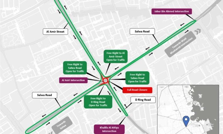 അൽ അസിരി ഇന്റർസെക്ഷന്റെ എല്ലാ ദിശകളിലും താൽക്കാലികമായി റോഡ് അടച്ചിടുമെന്ന് പൊതുമരാമത്ത് വകുപ്പ് അഷ്ഗാൽ അറിയിച്ചു.