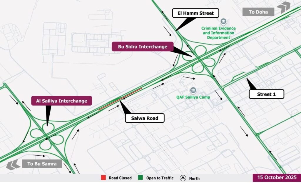 കൂടാതെ, അൽ ഖോർ കോസ്റ്റൽ റോഡിൽ നിന്ന് വരുന്നതും ഉം ഗാർണിലേക്ക് പോകുന്നതുമായ അൽ ദായെൻ ഇന്റർചേഞ്ച് ടണൽ (എക്സിറ്റ് 40, സ്ട്രീറ്റ് 1495) ഭാഗികമായി അടച്ചിടും. ഒക്ടോബർ 17, 18 തീയതികളിൽ പുലർച്ചെ 2 മുതൽ രാവിലെ 10 വരെയായിരിക്കും ഈ അടച്ചിടൽ. പതിവ് റോഡ് അറ്റകുറ്റപ്പണികൾ സുഗമമാക്കുന്നതിനായാണ് ഇത്.