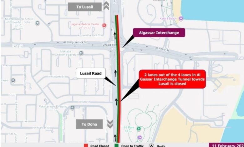 ഖസ്സാർ ഇന്റർചേഞ്ച് അണ്ടർപാസിൽ താത്കാലിക ഗതാഗത നിയന്ത്രണം പ്രഖ്യാപിച്ച് അശ്ഗാൽ