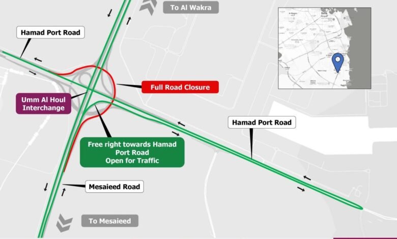 മെസൈദ് റോഡിലൂടെ വരുകയും ഹമദ് പോർട്ട് റോഡിലേക്ക് പോകുകയും ചെയ്യുന്ന വാഹനങ്ങൾ ഉപയോഗിക്കുന്ന ഉം അൽ ഹൂൾ ഇന്റർചേഞ്ച് എക്സിറ്റ് താൽക്കാലികമായി അടച്ചിടും.