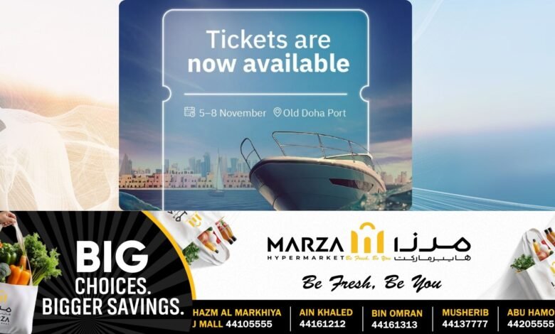 2025 നവംബർ 5 മുതൽ 8 വരെ പഴയ ദോഹ തുറമുഖത്ത് നടക്കുന്ന മേഖലയിലെ പ്രമുഖ സമുദ്ര ജീവിതശൈലി പരിപാടികളിൽ ഒന്നായ ഖത്തർ ബോട്ട് ഷോയുടെ ടിക്കറ്റുകൾ ഔദ്യോഗികമായി വിൽപ്പനയ്ക്കെത്തി.